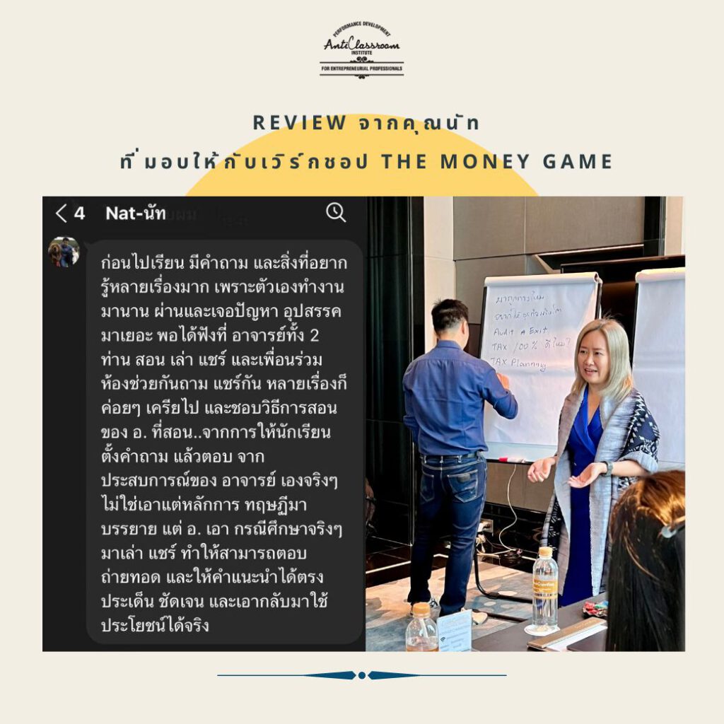 เวิร์กชอป The Money Game แบ่งปันโดย “คุณบี๊ & คุณพัช” ที่ปรึกษาทางการเงินผู้พลิกธุรกิจที่ติดลบ 25 ล้าน ทะยานสู่ยอดขาย 500 ล้าน จากการดูงบการเงิน ที่ออกแบบมาเพื่อช่วยเหลือ SME ขนาด S และ M เพื่อเติบโตต่ออย่างมีทิศทางโดยเฉพาะ
